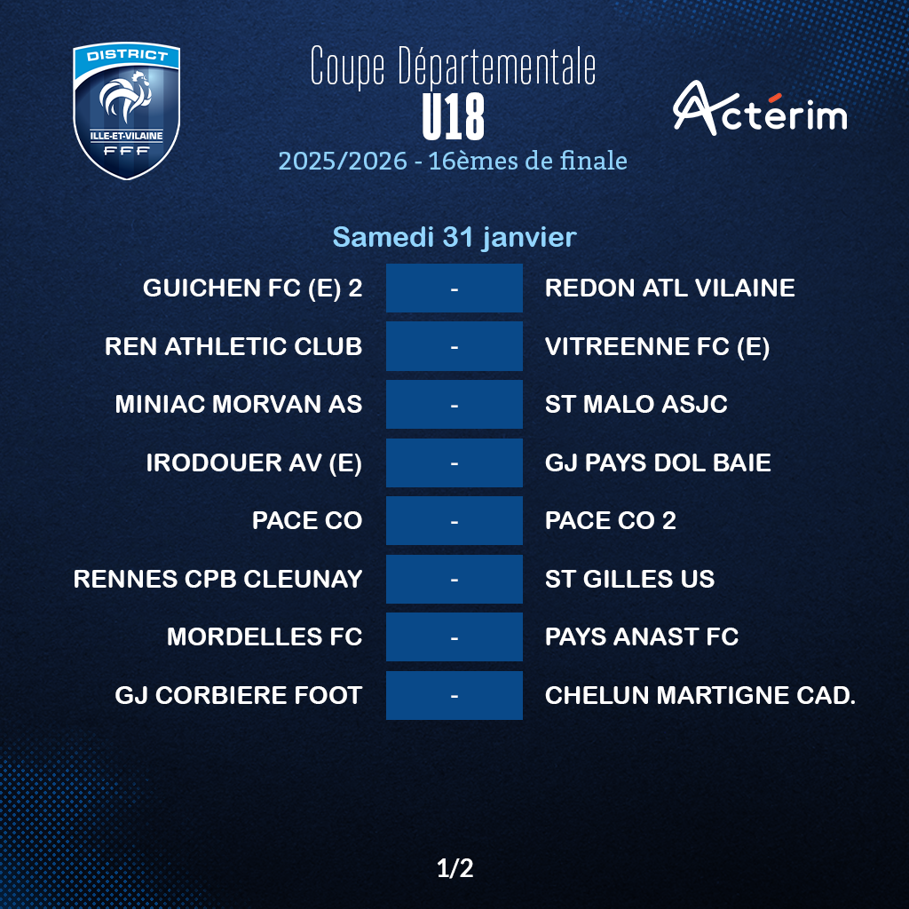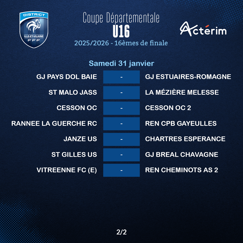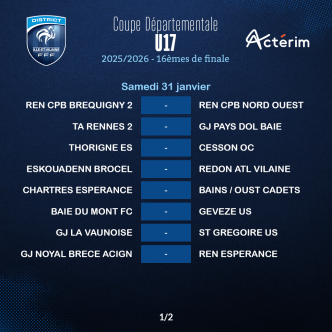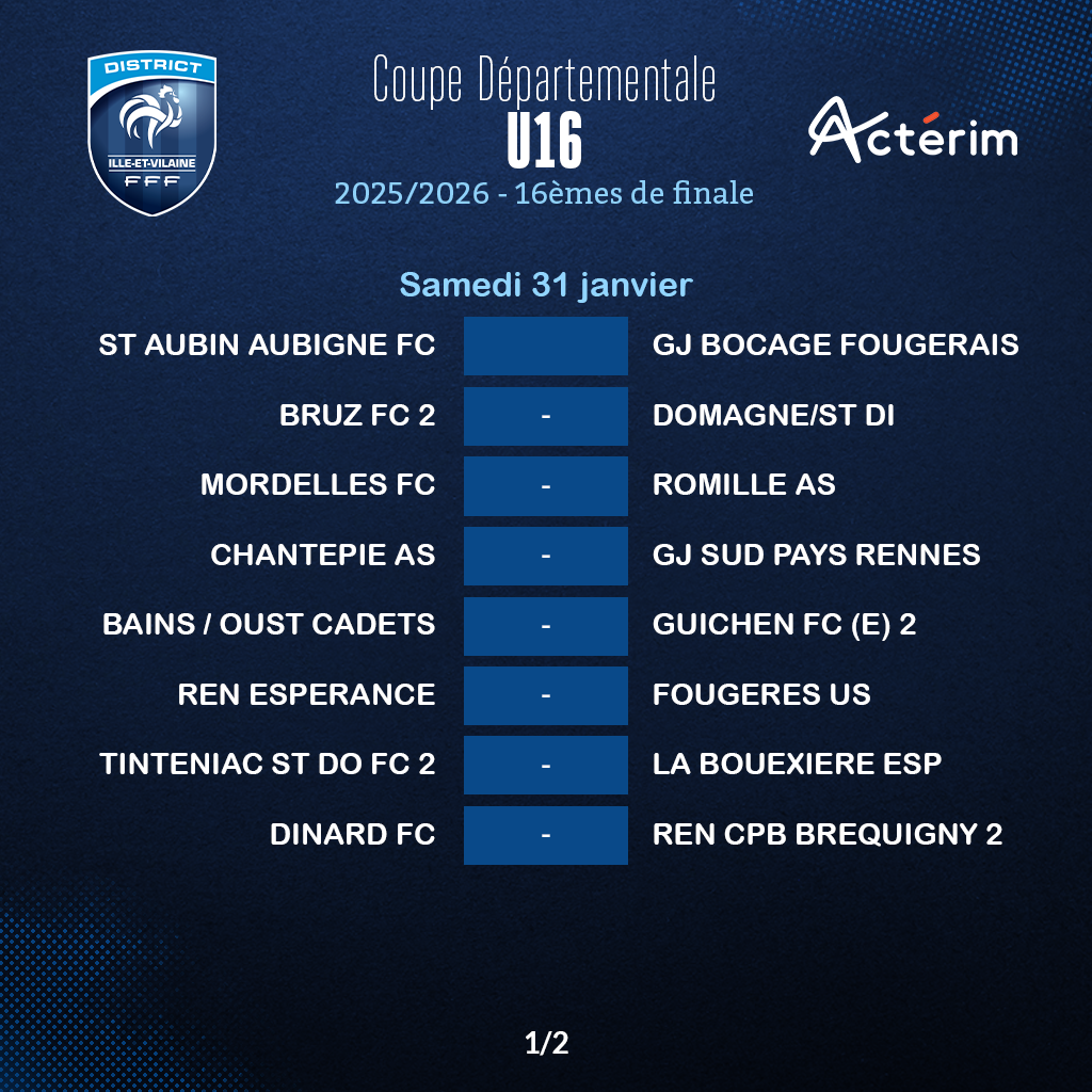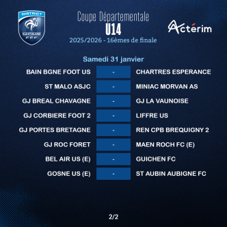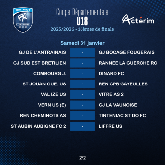 Retrouvez les tirages des 16èmes de finale des coupes départementales jeunes masculines :