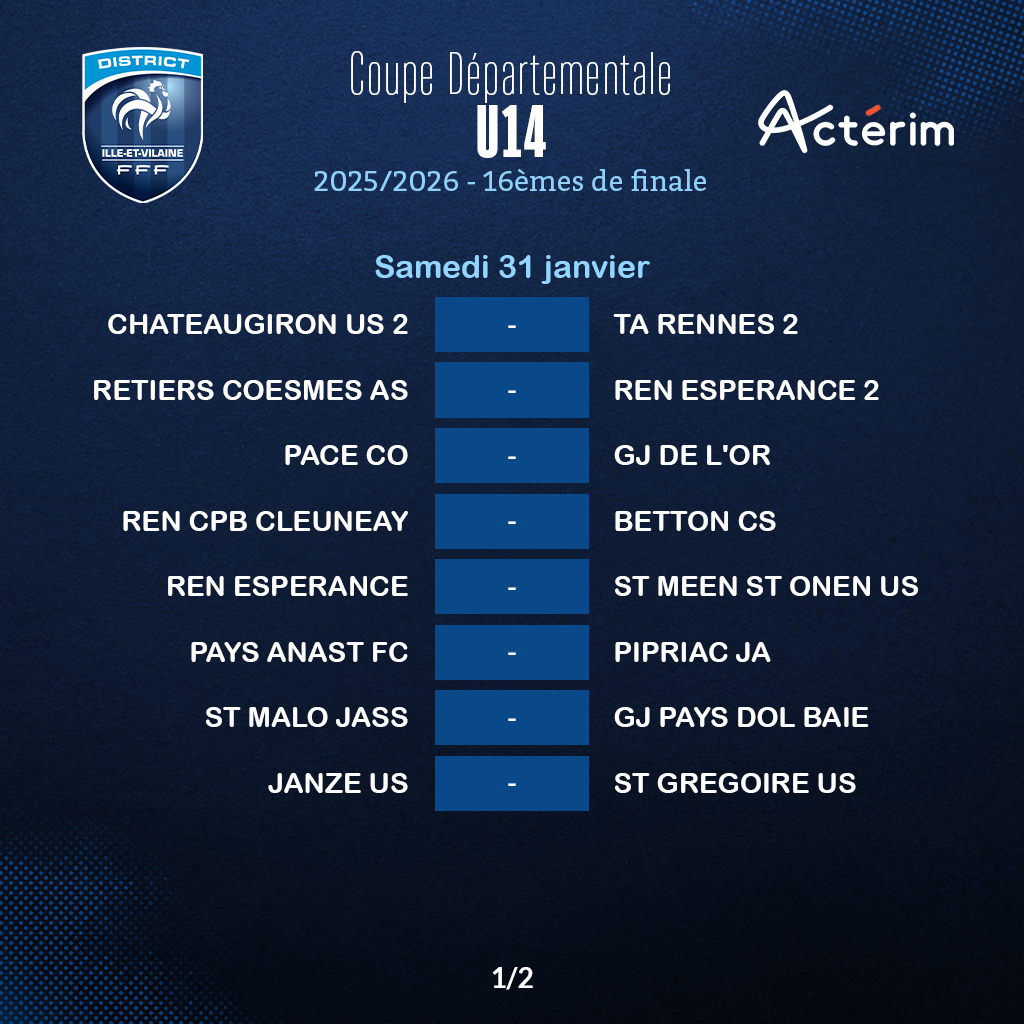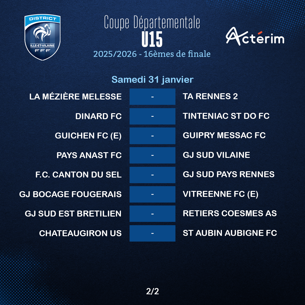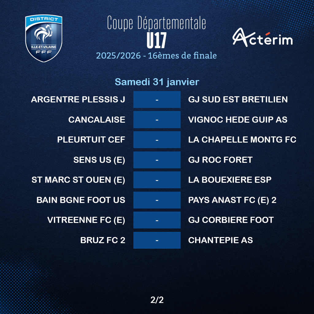Retrouvez les tirages des 16èmes de finale des coupes départementales jeunes masculines :