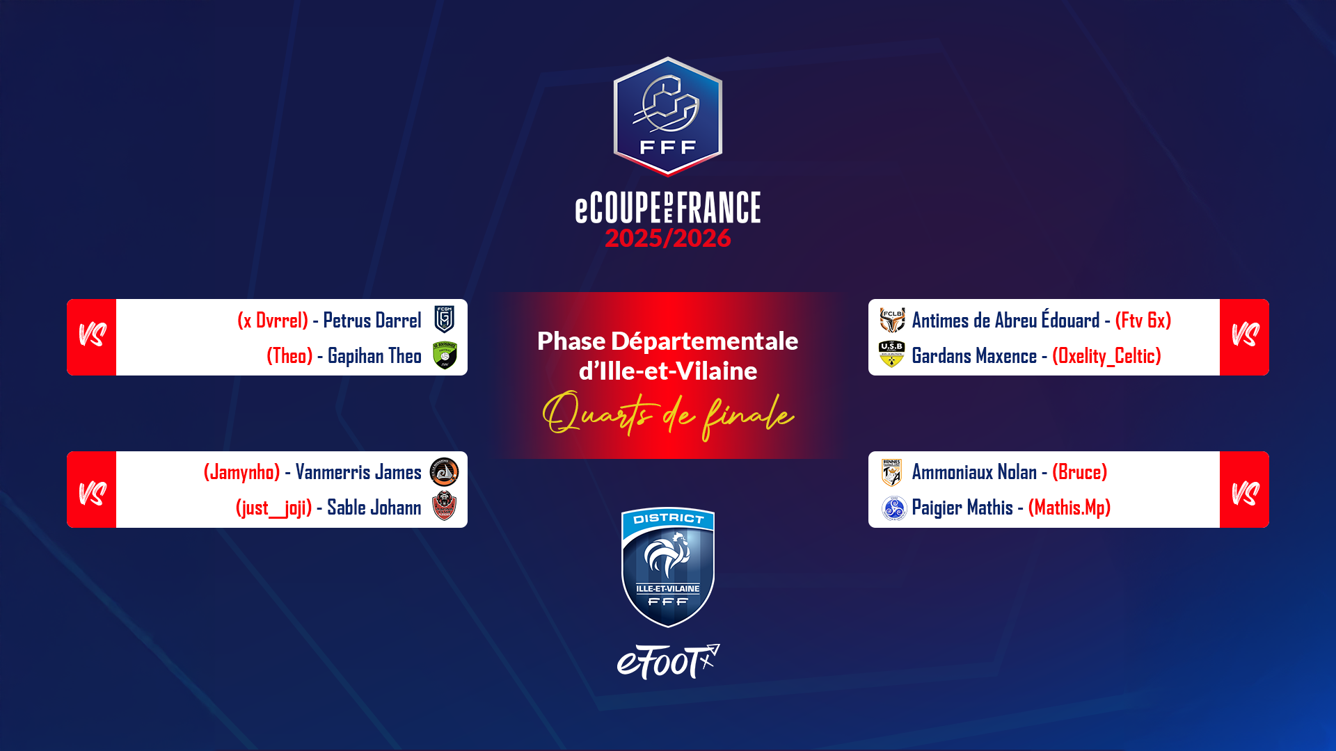 La phase départementale de l’eCoupe de France 2025-2026 poursuit son déroulement en Ille-et-Vilaine. La compétition entre désormais dans sa phase des quarts de finale.