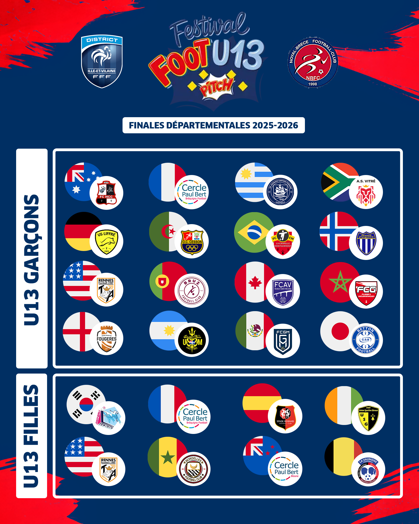 Le samedi 4 avril, se tiendra la phase départementale du traditionnel Festival Pitch U13 édition 2025/2026 à Noyal sur Vilaine.